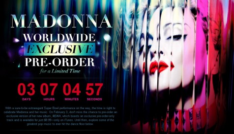 iTunes will offer an exclusive global pre-order of an 18 track Deluxe Edition of MDNA including one exclusive remix from Madonna’s new album. The bonus remix will be available from Friday February 3rd through Monday February 6th only. During this time period the album will be available for $9.99 and fans will also receive the digital single “Give Me All Your Luvin'” immediately. This single is also exclusive to iTunes during this limited time. At launch, the offer can be found at www.iTunes.com/Madonna.
